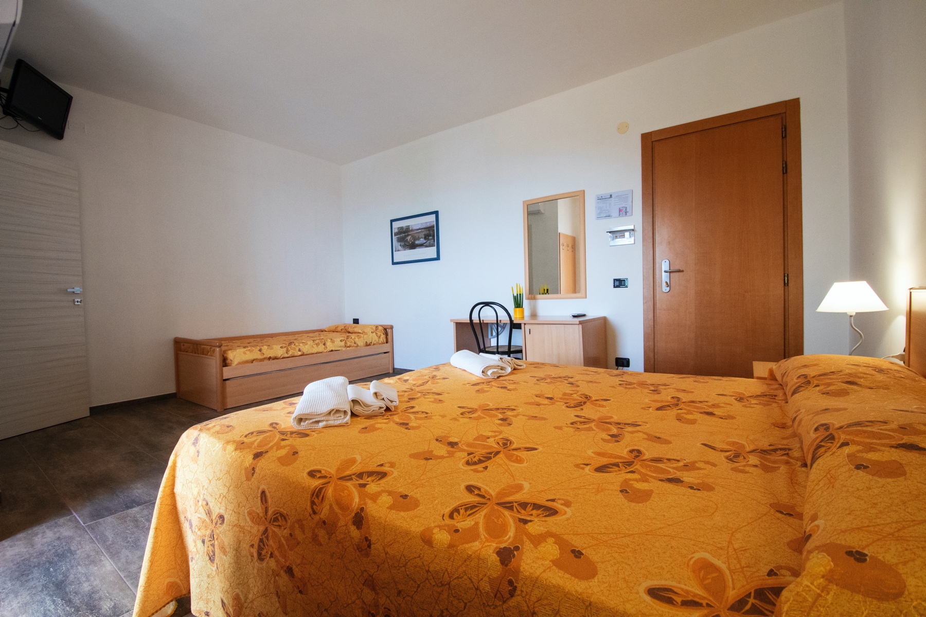 Le camere Standard (occupazione massima 4 adulti) dispongono di servizi privati con doccia, asciugacapelli, aria condizionata, telefono, minibar, cassaforte e Tv-sat. Su richiesta con supplemento: camera vista mare.
