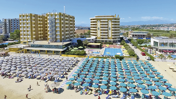 A disposizione degli ospiti reception 24h, ascensore, 3 bar, 3 sale ristorante climatizzate (su richiesta e con supplemento vengono forniti menu per intolleranze alimentari), sala TV, terrazza, parcheggio pubblico non custodito secondo disponibilità (gratuito), connessione Wi-Fi nelle aree comuni (gratuita), 2 piscine esterne (una semi-olimpionica e una per bambini - aperte dalle 9:30 alle 19:00; uso della cuffia obbligatorio) attrezzate con lettini secondo disponibilità, campo sportivo polivalente (tennis/calcetto - a pagamento), campo da bocce, ping-pong, area giochi per bambini, culla per infant 0-2 anni non compiuti su richiesta alla prenotazione secondo disponibilità (10 euro al giorno da pagare in loco), area baby (biberoneria con angolo cottura con forno a microonde, frullatore e scalda biberon, fasciatoio, area giochi, seggioloni).