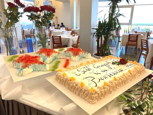 Pranzo e cena al ristorante Panoramico Bella Vista, con servizio al buffet assistito: antipasti caldi, antipasti freddi, primi piatti di carne e pesce, secondi di carne e pesce, frutta fresca e dessert.Note