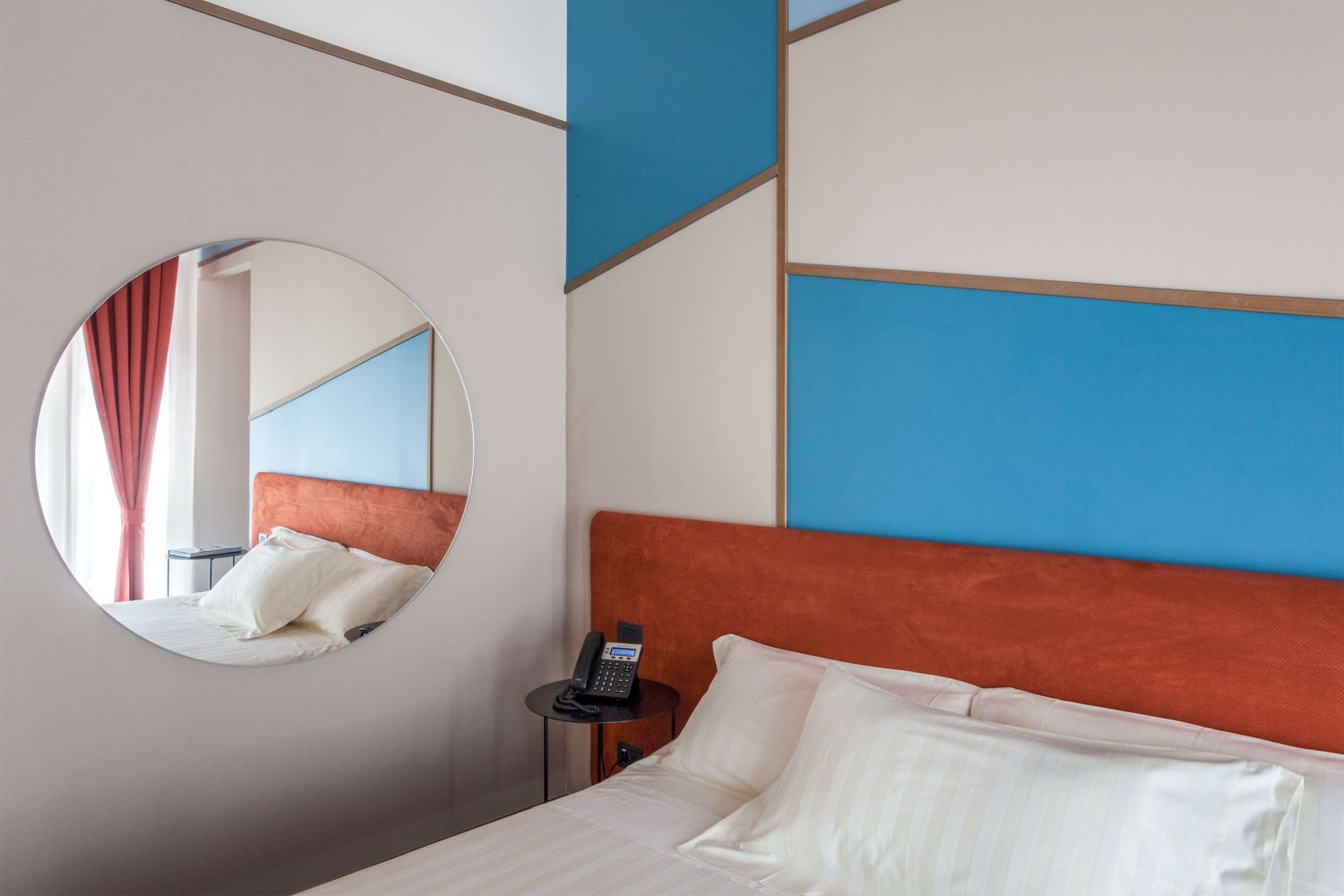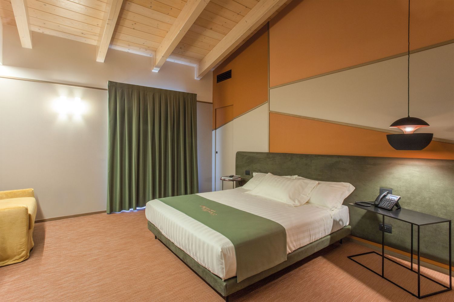 Tutte le camere dell’albergo presentano interni climatizzati, una scrivania, una cassaforte, una TV a schermo piatto e un bagno privato con bidet. Le camere includono anche un armadio.Poste su tre piani, si distinguono per lo spazio e per gli arredi dal design più moderno. Dispongono di bagno privato con biancheria da bagno, set cortesia, specchio ingranditore, asciuga capelli. Frigo bar, TV Ultra HD 43” bouquet di canali digitali terrestre e satellitari. Sistema di climatizzazione con ricambio d’aria e recupero di calore ad altissima efficienza. Cassetta di sicurezza, telefono con linea diretta. Coffee station in tutte le camere. Standard: camera con arredamento minimalista, spaziosa e luminosa con letto matrimoniale. Ampio bagno con doccia in cristallo, asciuga capelli, set cortesia a marchio ecolabel e biancheria da bagno . Superior: camera con arredamento minimalista, spaziosa e luminosa, comoda poltrona letto per la terza persona. Balcone attrezzato di piccolo stendino, tavolino e sedie. Ampio bagno con doccia in cristallo, asciuga capelli, set cortesia a marchio Ecolabel e biancheria da bagno.Amici a 4 Zampe