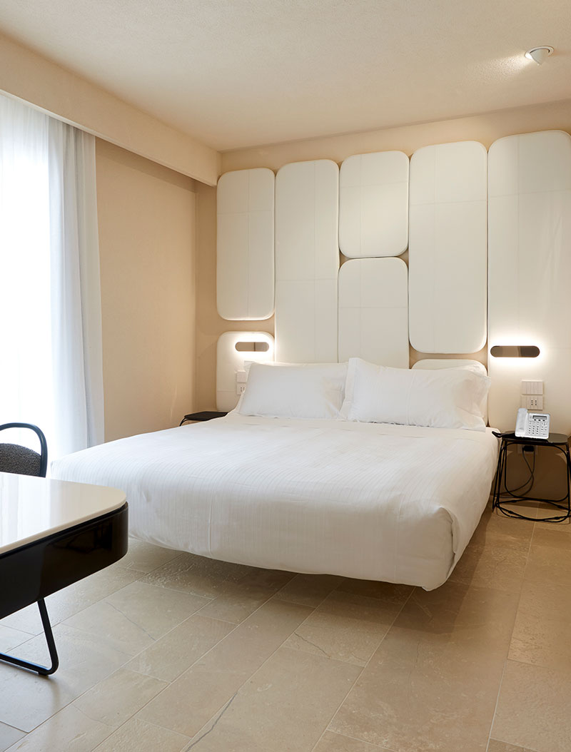 Si sviluppa su uno spazio di 20mq e si affaccia sul cortile interno dell’albergo. Lo stile contemporaneo e il design semplice ma d’effetto rendono lo spazio luminoso e tranquillo. Sonni rigeneranti grazie ad un letto matrimoniale large, sul quale rilassarsi alla fine di una giornata, e un ambiente insonorizzato che garantisce il silenzio. A disposizione, oltre ad un televisore a schermo piatto, un minibar e un bollitore.