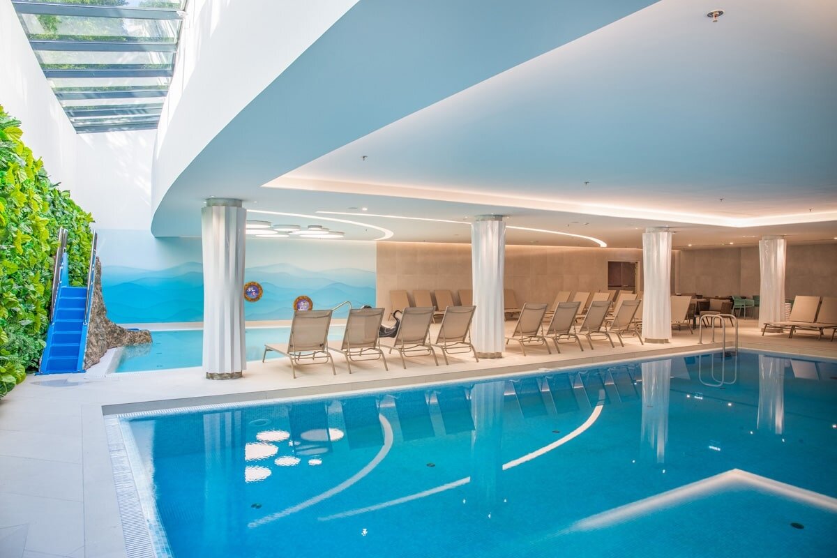 sistemazione nella tipologia di camera selezionata, drink di benvenuto, mezza pensione (ricca colazione a buffet e deliziosa cena a buffet), Wi-Fi, uso illimitato del mondo spa (1 piscina, 1 piscina avventura e 1 piscina per bambini), uso illimitato del mondo saune: sauna finlandese, sauna aromatica, fontana di ghiaccio, doccia, panca riscaldata, sauna del diavolo, sauna a infrarossi, cabina a vapore, panca riscaldata per sauna e secchio per doccia, uso della palestra, partecipazione gratuita ai programmi giornalieri di fitness e sport, accappatoio in camera.La quota non comprende