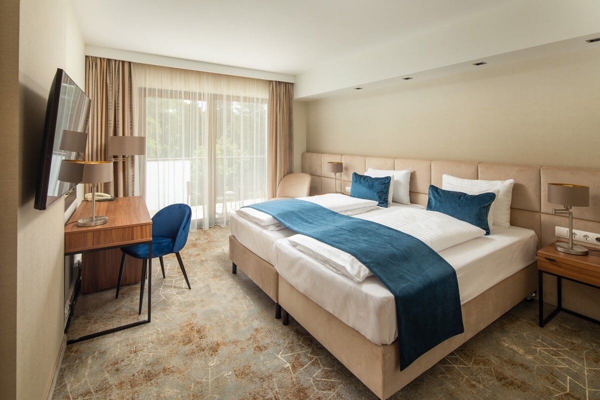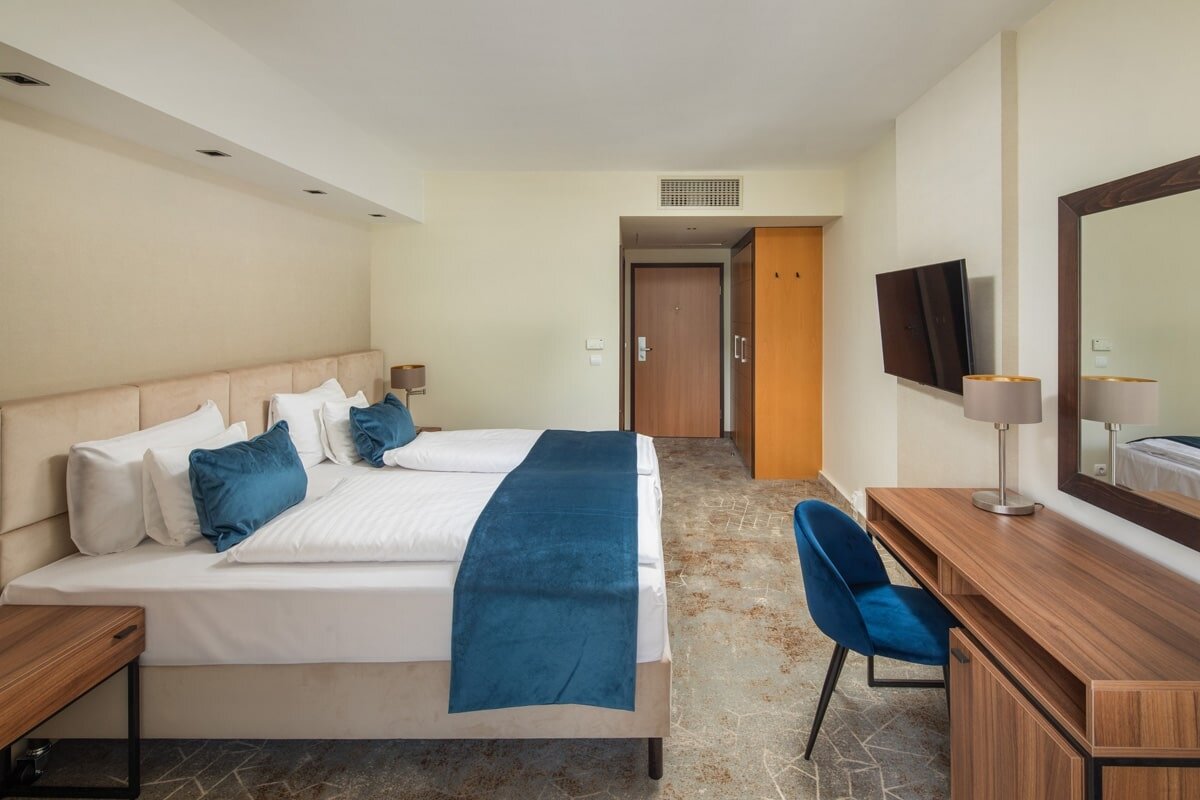 Scoprite il nuovissimo hotel a 4 stelle di Sopron con le sue 144 camere e godetevi la vicinanza a un ambiente naturale eccezionale. Le nostre camere moderne, arredate con colori eleganti, sono il luogo perfetto per rilassarsi. Le nostre camere e suite "Foresta" offrono una vista spettacolare sulla foresta, poiché il nostro hotel si trova a Loverek, la cintura verde di Sopron, così potrete ricaricare le batterie in un fantastico ambiente naturale. Camera Doppia Standard: camere moderne per due persone, arredate con colori eleganti, con balcone alla francese che si affaccia sul parcheggio. 23 mq, con 2 letti da 200x100 cm. Camera Doppia Standard Plus: camere confortevoli per due persone, arredate con colori eleganti, con balcone che si affaccia sul parcheggio. 23 mq, con 2 letti da 200x100 cm. Camera Doppia Foresta: confortevoli camere doppie con possibilità di letto aggiuntivo, arredate con colori eleganti e dotate di balcone con vista mozzafiato sul giardino dell'hotel. 23 mq, con 2 letti da 200x100 cm.Amici a 4 Zampe