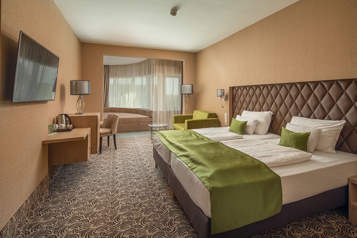 Situato al confine occidentale del paese, immerso in un incantevole verde paesaggio, il Greenfield Hotel Golf & Spa si trova in una posizione privilegiata a Bükfürdo. La struttura offre 207 camere eleganti e funzionali, un'area wellness e sauna di 3500 m², trattamenti indulgenti e tradizionali, programmi sportivi, un campo da golf da campionato a 18 buche, un centro di intrattenimento e delizie culinarie per tutti coloro che cercano il massimo del relax e del tempo libero. Nel 2022, l'hotel è stato rinnovato, ringiovanendo ogni angolo e offrendo così un ambiente ancora più elegante e una gamma più ampia di servizi, garantendo completo relax e svago per tutte le età!Sistemazioni