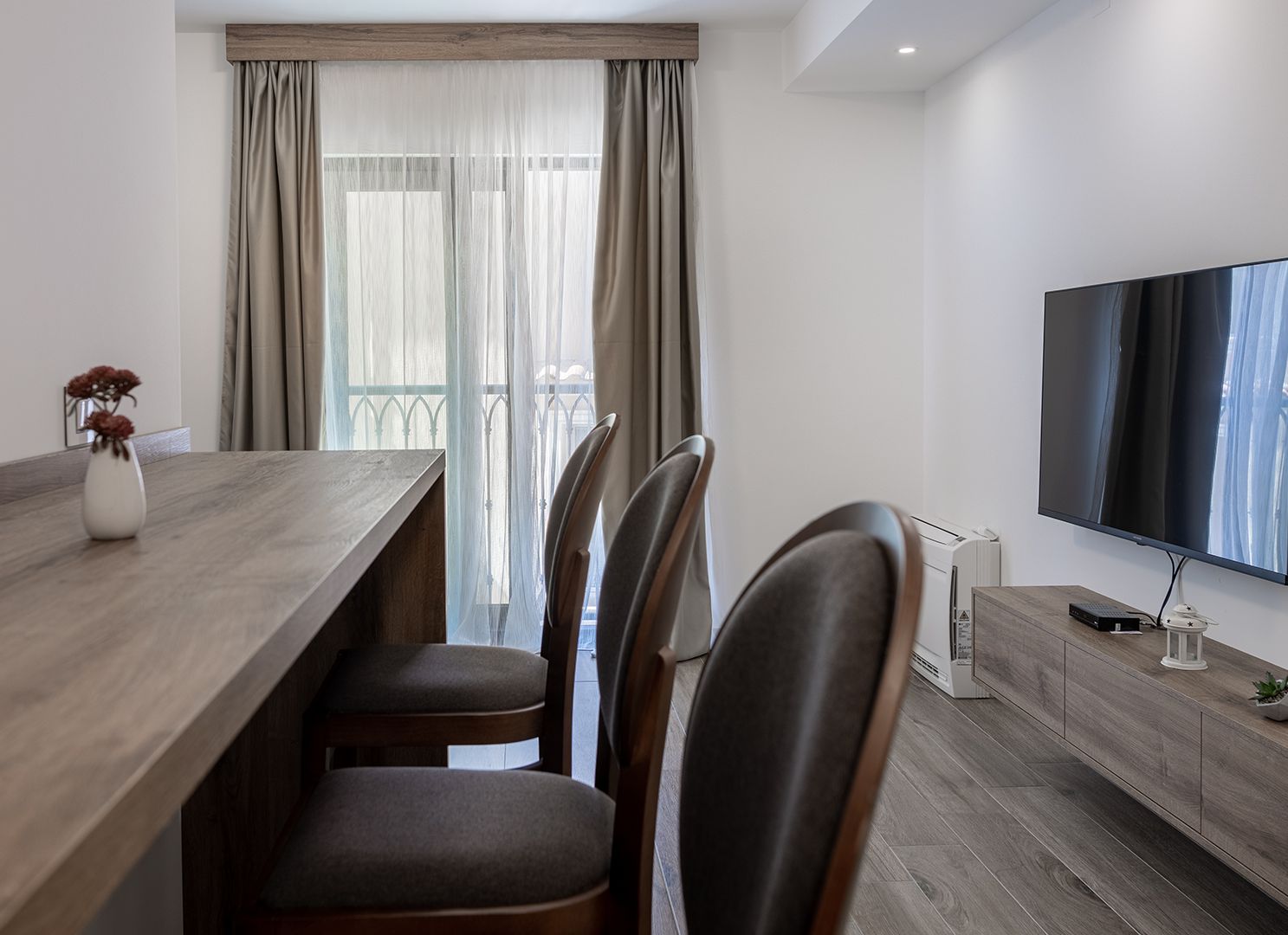 L'hotel dispone di 22 eleganti e accoglienti unità abitative. Tutte realizzate in un design moderno, offrono la massima qualità e comfort. Ogni camera e suite è ben attrezzata per un soggiorno piacevole: balcone, bagno privato con doccia, asciugacapelli, TV con una lista di canali internazionali, bollitore, minibar e Wi-Fi ad alta velocità. Ogni giorno viene servita una colazione a buffet in una meravigliosa sala per la colazione e in un'accogliente terrazza vicino alla fontana. I nostri ospiti hanno anche accesso alla spa e alla piscina sul tetto.Amici a 4 Zampe