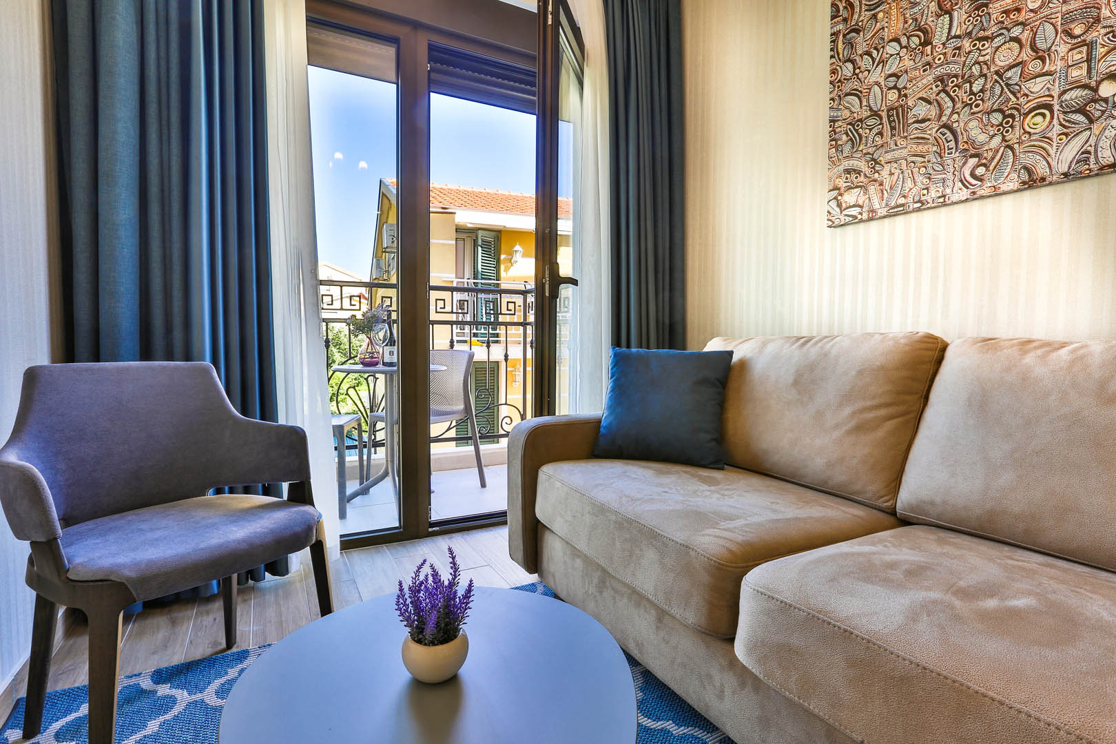 L'hotel dispone di 20 camere e 7 appartamenti . Tutte le unità abitative sono dotate di balcone, aria condizionata, smart TV, minibar, cassaforte, teiera. Bagni modernamente attrezzati con asciugamani e cosmetici sicuri. Camera doppia standard: letto matrimoniale o due letti singoli (180x200), bagno con doccia, asciugacapelli, pantofole, aria condizionata, riscaldamento, telefono con linea diretta, TV LCD satellitare, Wifi, minibar, cassaforte, terrazza. 21-26 mq, vista montagna o piscina. Suite con balcone: camera da letto e soggiorno (letto alla francese 180x200 e divano 140x200), bagno con doccia, asciugacapelli, pantofole, aria condizionata, riscaldamento, telefono diretto, TV LCD satellitare, Wifi, minibar, cassaforte, terrazza. 34 mq, vista sulle montagne. Executive Suite: camera da letto e soggiorno (letto alla francese 180x200 e divano 160x200), bagno con doccia, asciugacapelli, pantofole, aria condizionata, riscaldamento, telefono diretto, TV LCD satellitare, Wifi, minibar, cassaforte, terrazza. 42 mq, vista piscina.Spiaggia