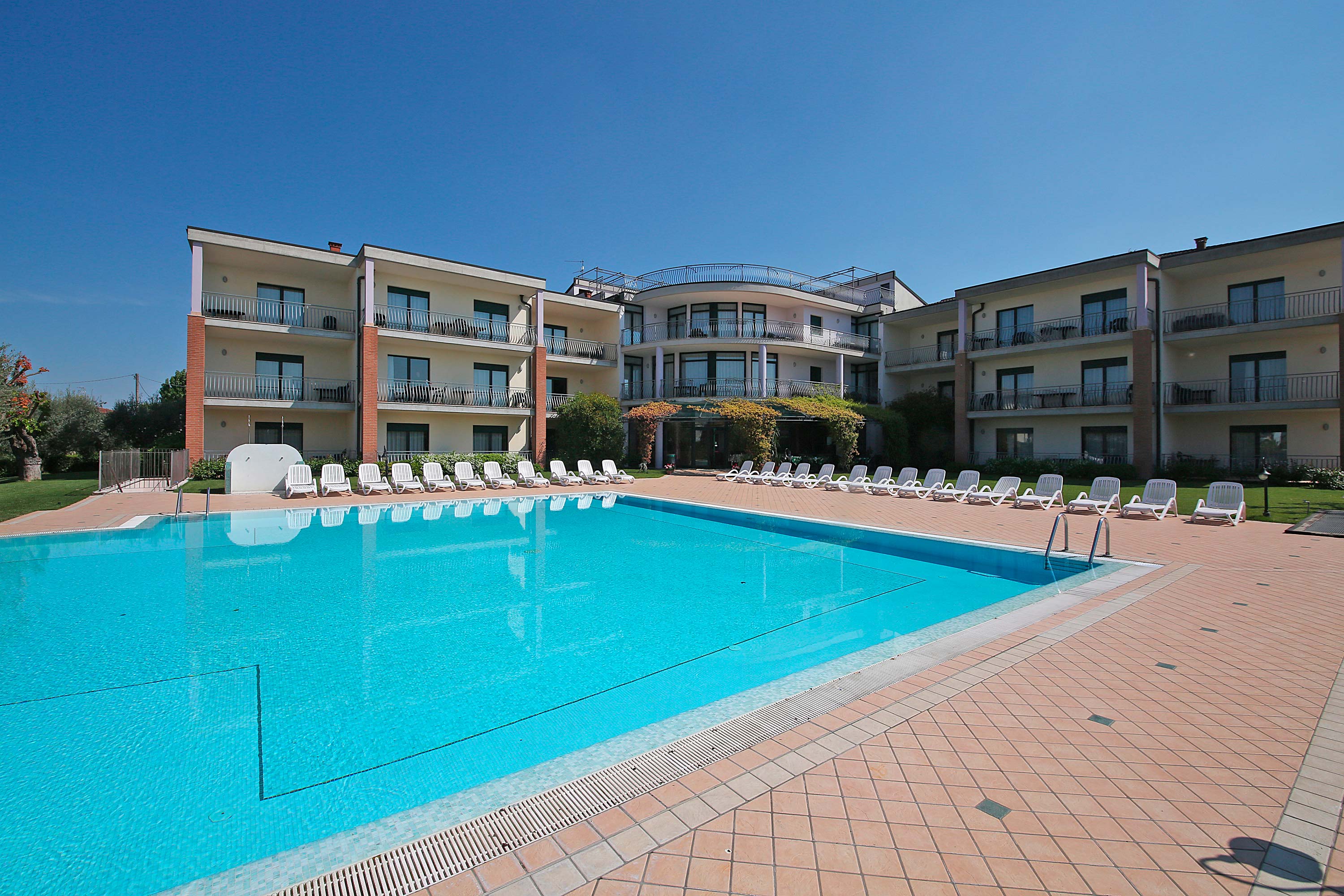La piscina molto ampia rimane unica e usufruibile sia dai clienti dell'hotel che dai clienti del residence.