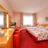 D2: camera doppia Standard ca. 12 mq. E' dotata di bagno con vasca o doccia, phon, telefono, Tv Sat, safe, frigobar, aria condizionata, Wi.-fi, balcone o terrazza. B2: camera doppia Superior: ca. 15 mq. E' dotata di bagno con vasca o doccia, phon, telefono, Tv Sat, safe, frigobar, aria condizionata, Wi.-fi, balcone o terrazza.La quota comprende