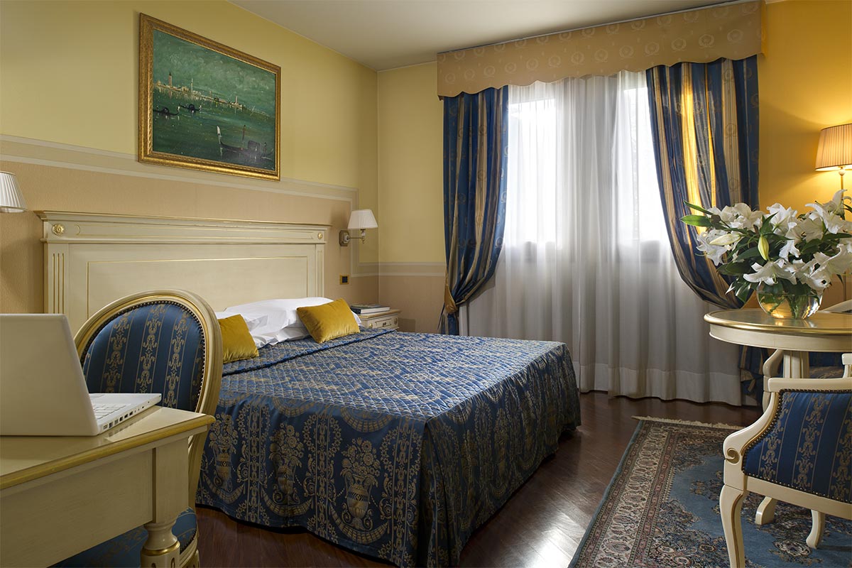 Among these wonderful residences, Villa Pace Park Hotel Bolognese, an ancient Villa dated end’800,is located in a strategic area only 4 km from Treviso , a medieval town surrounded by sixteenth-century walls. The hotel is located at only 5 minutes from Treviso Airport and 20 minutes from Venice Marco Polo Airport.Venice with its magic air is just twenty minutes, but here you breathe a slow atmosphere ,marked by the park with its secular trees, characterized by pleasant and relaxing environment which provides guests comfort of high level. The hotel was recently restored with careful work lasted 3 years which led the structure to a total capacity of 95 rooms and implementation of four meeting rooms up to 250 seats equipped with the most modern technologies, a beautiful relax area with an outdoor swimming pool to exclusive use of hotel guests and a large parking lot. Not to forget its famous and historical restaurant up to 250 seats, of which 80 in the beautiful veranda with windows that directly lean on the the park and a new proposal of Lunge Bar with a wide range of drinks and snacks.Not least the park, beautiful environment which is a point of further strength too. It surrounds the entire hotel with its 10,000 square metres of trees and with its typical and original centenary reed made for a truly relaxing stay.In fact it’s possible to walk inside the structure through some tunnels which are immersed in the green with beams and windows that connect the different parts of the hotel to the new and modern central receiption. RESTAURANT: The Bolognese Restaurant, with its intimate and refined atmosphere, is the ideal place to indulge in the specialities of Venitian cuisine, accompanied by fine national and international wines. The summer terrace with its spectacular view of the grounds is the perfect setting for a business lunch, a romantic candlelight dinner or a private function.Our Chef always comes up with sophisticated and refined menus with a genuine and typical local taste, made mainly with local seasonal products, to make every moment a gastronomic journey in the Venetian traditions. PARK: Not least the park, beautiful environment which is a point of further strength too. It surrounds the entire hotel with its 10,000 square metres of trees and with its typical and original centenary reed made for a truly relaxing stay. In fact , it’s possible to walk inside the structure through some tunnels which are immersed in the green with beams and windows that connect the different parts of the hotel to the new and modern central receiption.CIN Code