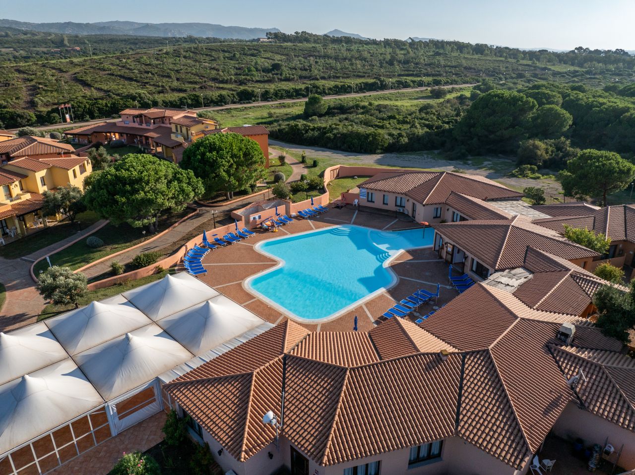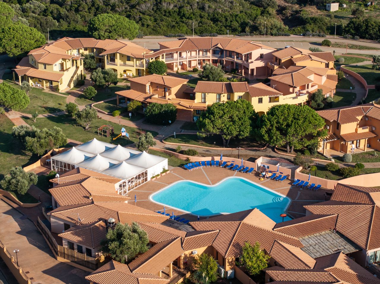 Il complesso è composto da appartamenti a schiera arredati in stile sardo, con i tipici colori tenui. Possono essere situati al piano terra, con veranda e piccolo giardino, oppure al primo piano, con balcone, tutti con ingresso indipendente; la maggior parte dispone di spazi esterni arredati. A soli 800 metri si trova la vivace località di Vignola Mare, con la sua ampia spiaggia di sabbia fine e vari servizi: bancomat, supermercato, parrucchiere, parafarmacia, guardia medica. A pochi chilometri dalla residenza si possono raggiungere le spiagge di Nuracu Nieddu (4,7 km), Monti Russu (7,2 km), Rena Majore (12,2 km). Santa Teresa di Gallura, punto di partenza per la Corsica, dista solo 19 km. Si consiglia l’uso dell’auto.Sistemazioni