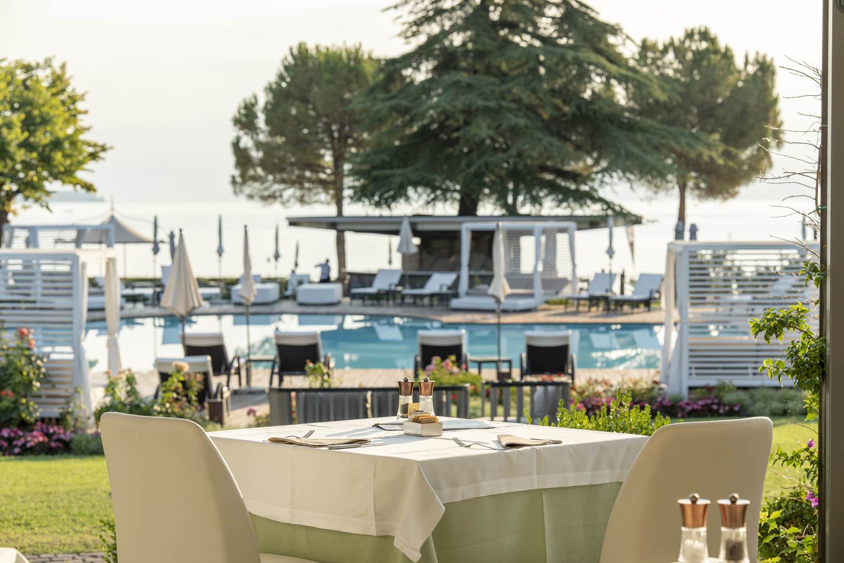 Albergo già esistente (ex relais Sant'Emiliano) completamente rinnovato (2018) e ristrutturato, diretto sul Lago. Piscina coperta e scoperta, wellness, pool bar, bar interno. 2 ristoranti interni RIVALE e B-BAY Possibilità anche di cenare presso altro ristorante di proprietà a 500mt dall'hotel ACQUARIVA specialità pesce di mare (solo à la carte per tutti e 3) Ristoranti: all'interno della struttura si trova B-Bay Bistro, aperto tutto il giorno per il lunch e alla sera per un light dinner, Rivale ristorante con cucina raffinata e gourmet tutti con solo servizio à la carte. Terzo punto è il ristorante Aquariva, con specialità di mare a ca. 500 metri dall'hotel sempre e solo con servizio à la carte. Per bambini fino a 16 anni: accesso piscina coperta e spa (unica area con una sola entrata) solo in orario dalle 8,00 alle 12,00 del mattino. Dalle 13,00 in poi vietato l'accesso ai minori. Servizio taxi : solo a richiesta e a pagamento per tutti i clienti (ca. € 25,00 a tratta) per Desenzano centro Sconti e transfer per i principali campi da golf nei dintorni. Pontile privato con attracco barche e prendisole. Non attrezzato con lettini. All'arrivo di ogni cliente, il ricevimento chiede numero di carta di credito a garanzia del pagamento di eventuali extra consumati duranti il soggiorno. Procedura oramai consona a molte strutture per evitare spiacevoli inconvenienti di partenza improvvise senza saldo degli extra sul conto della camera Culla a richiesta. A pagamento. € 15.00 al giorno da pagare in loco. Animali ammessi, su richiesta. € 40.00 al giorno da pagare in loco. Parcheggio non custodito, incluso nel prezzo Tennis, golf e noleggio biciclette a pagamento Wellness: Sauna e bagno turco inclusi nel prezzo. Wellness: Massaggi e beauty center a pagamento. Colazione a buffet, caldo e freddo, anche senza glutine e prodotti di propria produzione Cena: à la carte Carta di credito accettate: American Express, Visa, Carta Si, Mastercard, Bancomatt/Maestro. Piscina esterna. 250mq ca. Ombrelloni, sdraio e telo piscina incluso. Piscina interna, 140mq ca. riscaldata Culla: € 15.00 al giorno da pagare in loco. Da indicare al momento della prenotazioneCamere