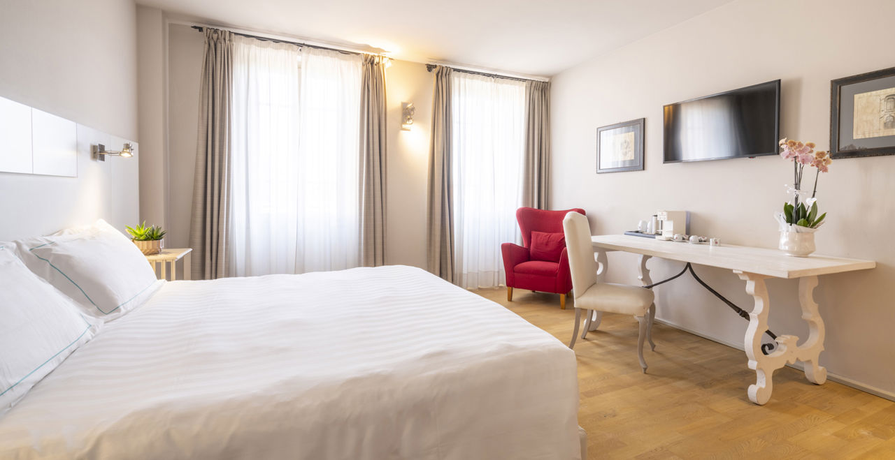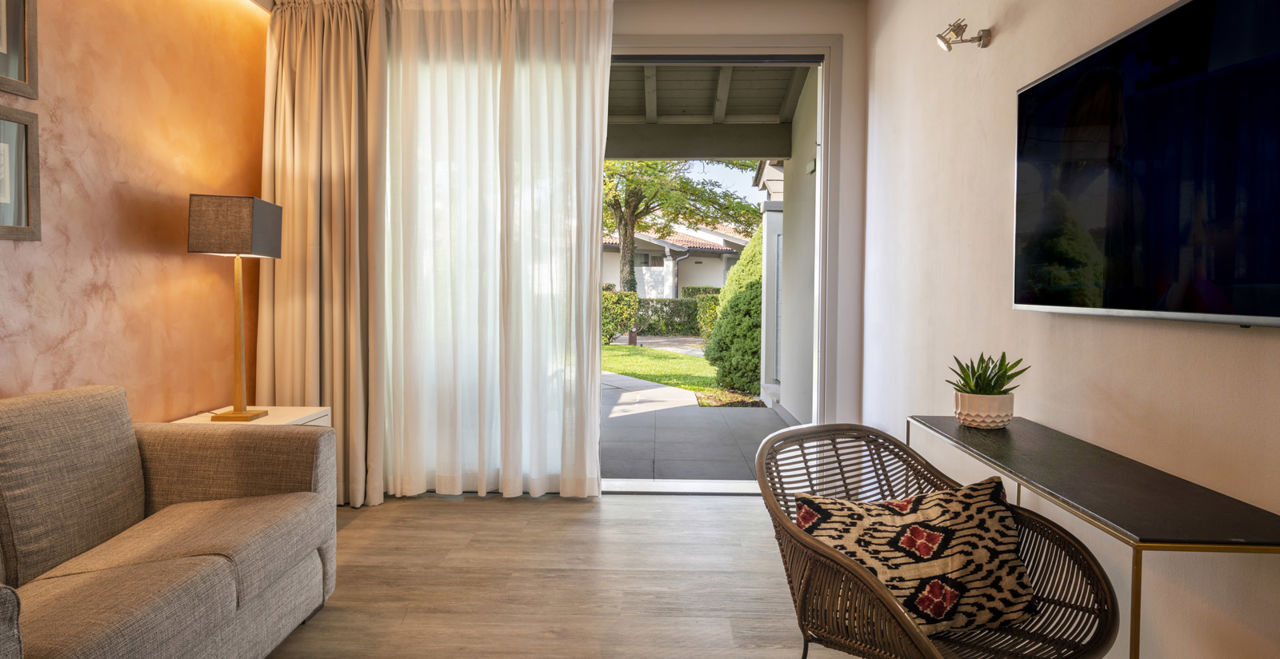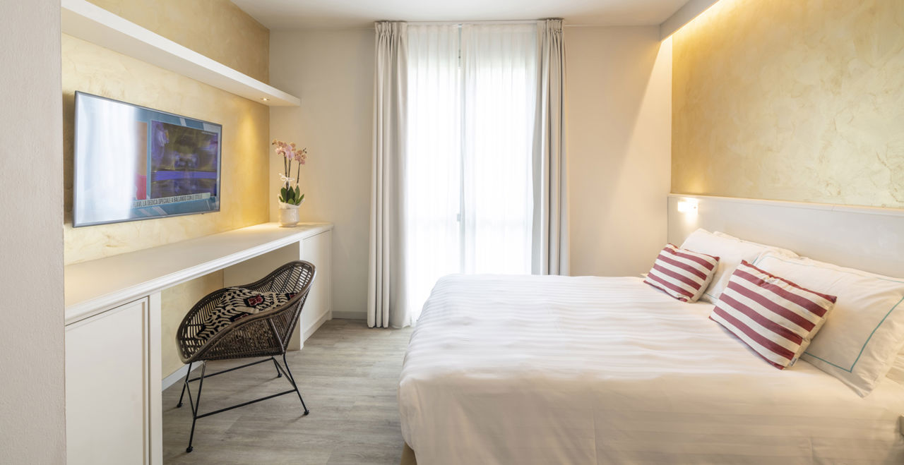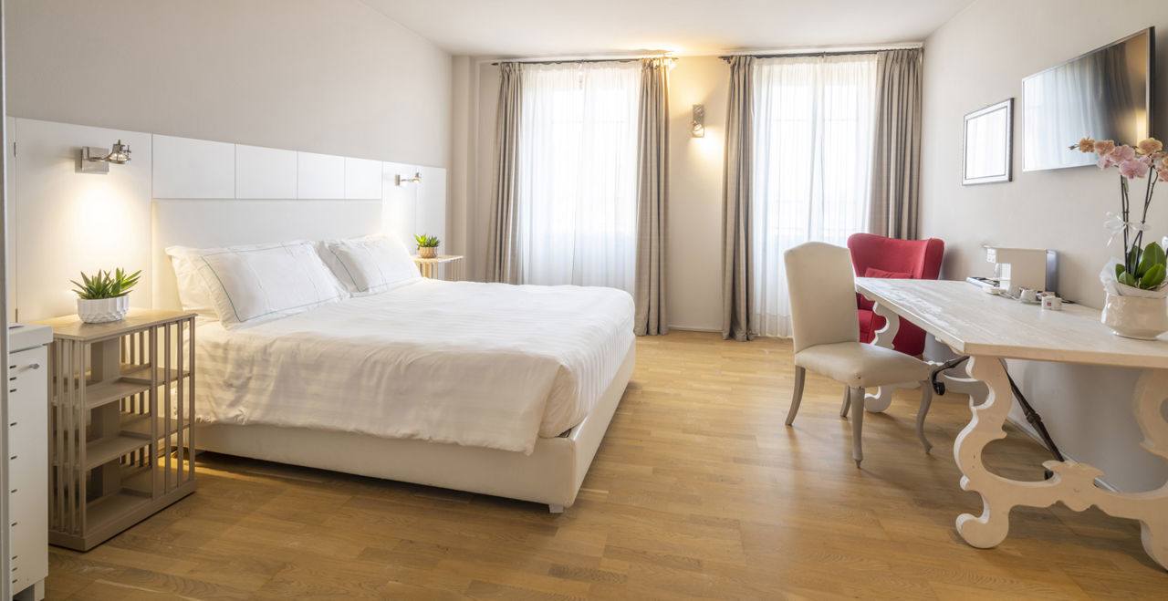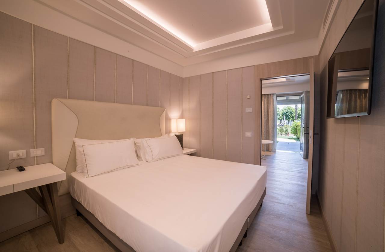 D2 DB Classic: 22/24mq ca. Terrazza esterna. Bagno con doccia o vasca. Frigo bar e cassaforte. Macchina da caffè Espresso. Amenities bagno Etro’. Climatizzatore/riscaldamento Tv Sat con canali internazionali. Accappatoio e ciabattine (camera senza vista, in casa madre) J3 Junior Suite Park: 28/30mq ca. Terrazza esterna e vista lago laterale. Letto King Size o twin. Cabina armadio. Divano letto. Bagno con doccia. Frigo bar e cassaforte. Macchina da caffè Espresso. Amenities bagno Etro’. Climatizzatore/riscaldamento. Tv Sat con canali internazionali. Accappatoio e pantofole. C3 Suite Parco: 40mq ca. Terrazza esterna e vista lago laterale. Letto King Size. Cabina armadio o armadio. Soggiorno/living con divano letto. Bagno con doccia. Frigo bar e cassaforte Macchina da caffè Espresso. Amenities bagno Etro’. Climatizzatore/riscaldamento. Tv Sat con canali internazionali in camera da letto ed in soggiorno. Accappatoio e pantofole Tutte le camere con WI-FI gratuito, con accappatoio e ciabattine. Primo piano, acqua minerale all'arrivo, bollitore per tè e caffè, specchio wellness in bagno. Occupazione: In JUNIOR SUITE Park possibili 2 adulti e 1 bimbo fino ai 17 anni, in SUITE possibili 3 adulti o 2 adulti e 1 bimboLa quota comprende