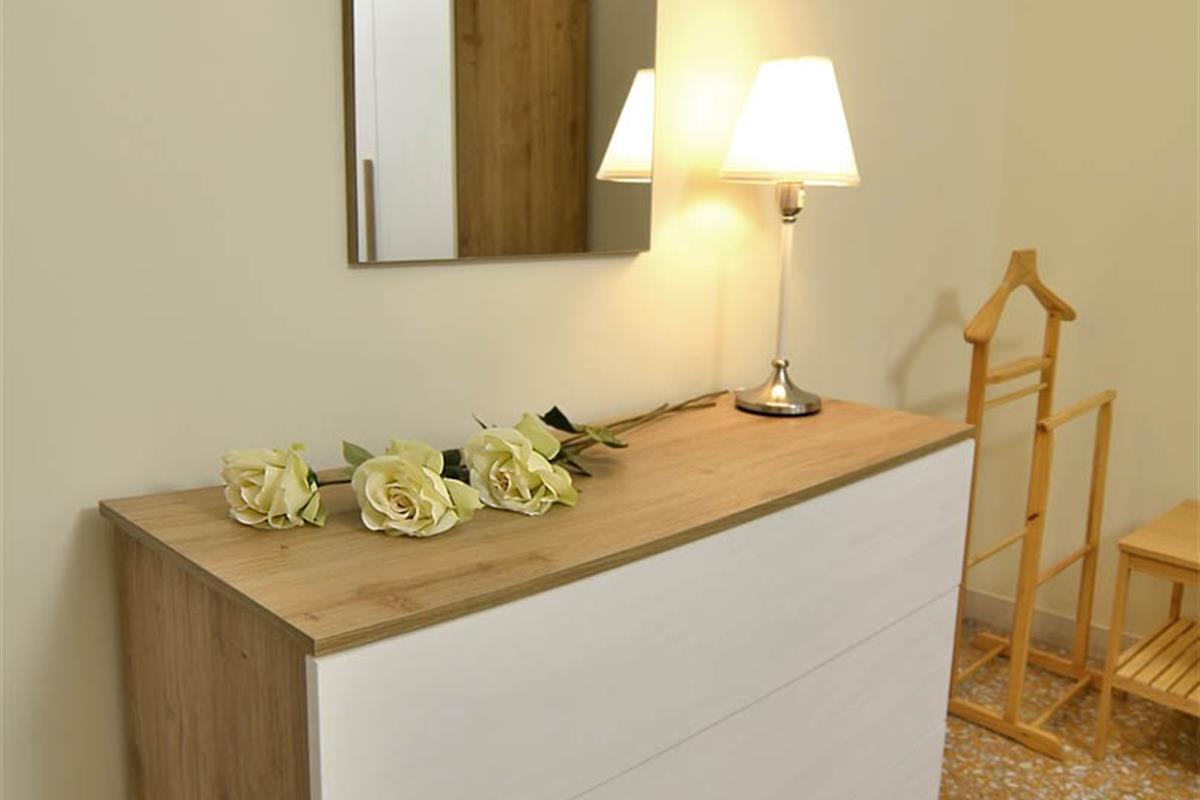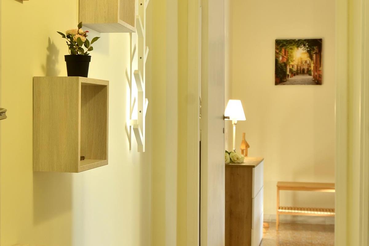 L’alloggio, è ben distribuito, accoglie gli ospiti con un ingresso che conduce a un corridoio funzionale, collegando armoniosamente tutti gli ambienti della casa.