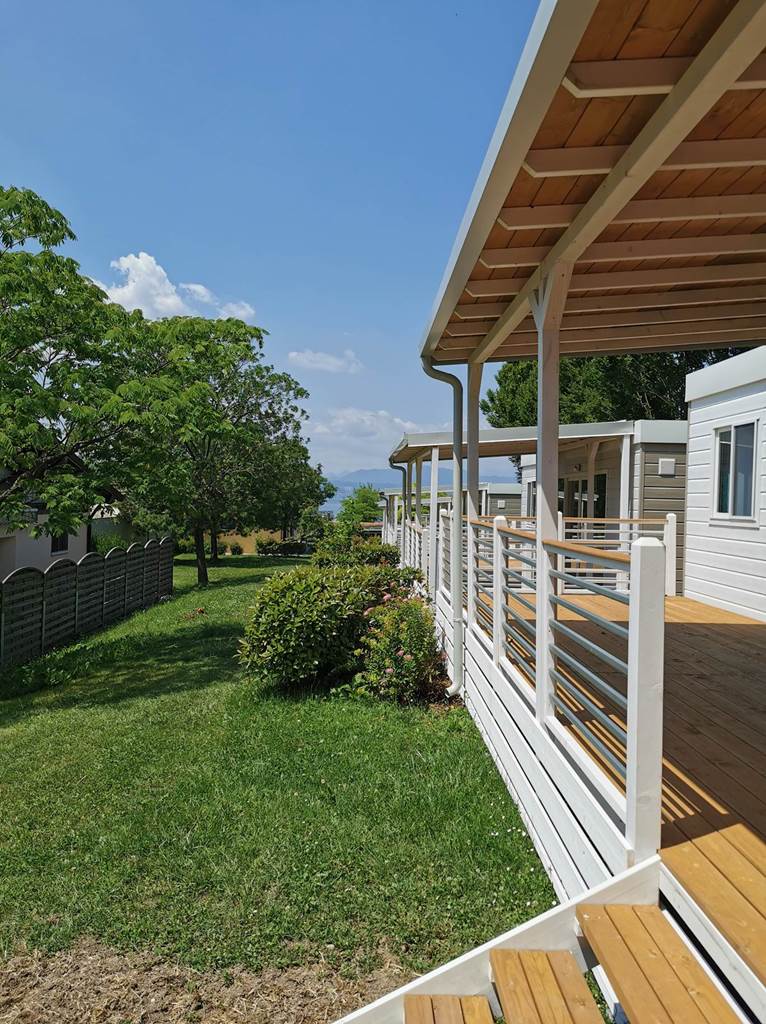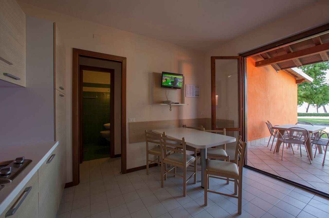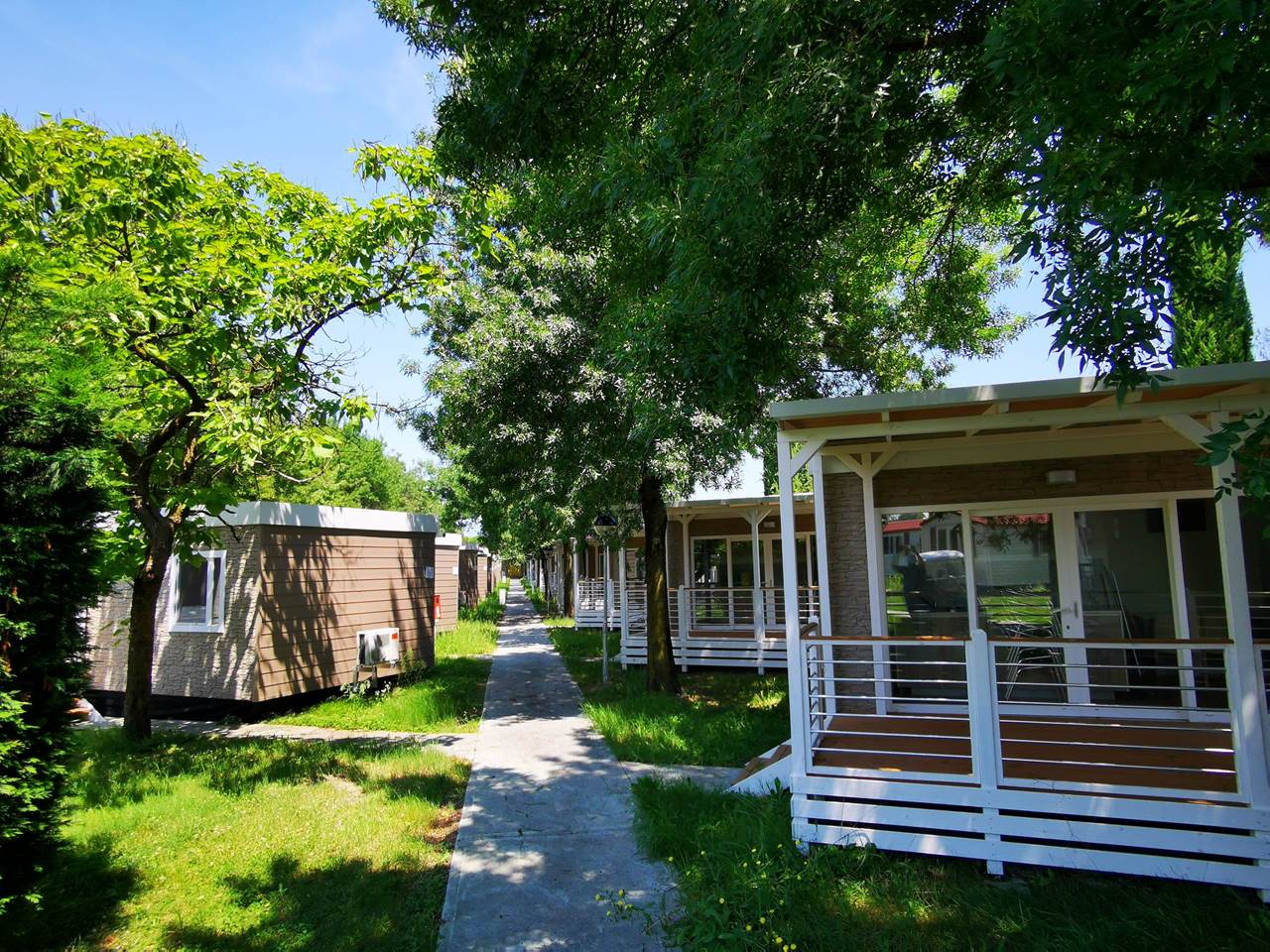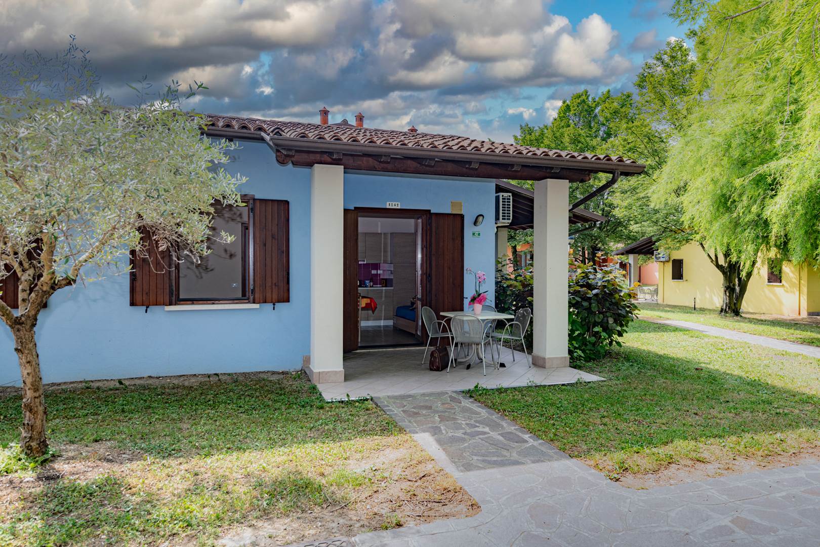 Z1 Maxi Caravan: 33mq ca. Camera da letto con letto matrimoniale, 2 camere da letto con due letti singoli, angolo cottura e frigorifero, bagno con doccia, terrazzo coperto (10-15 m²) sul giardino con tavolo e sedie, aria condizionata (caldo/freddo), TV, stoviglie per 6 persone, microonde, parcheggio privato.