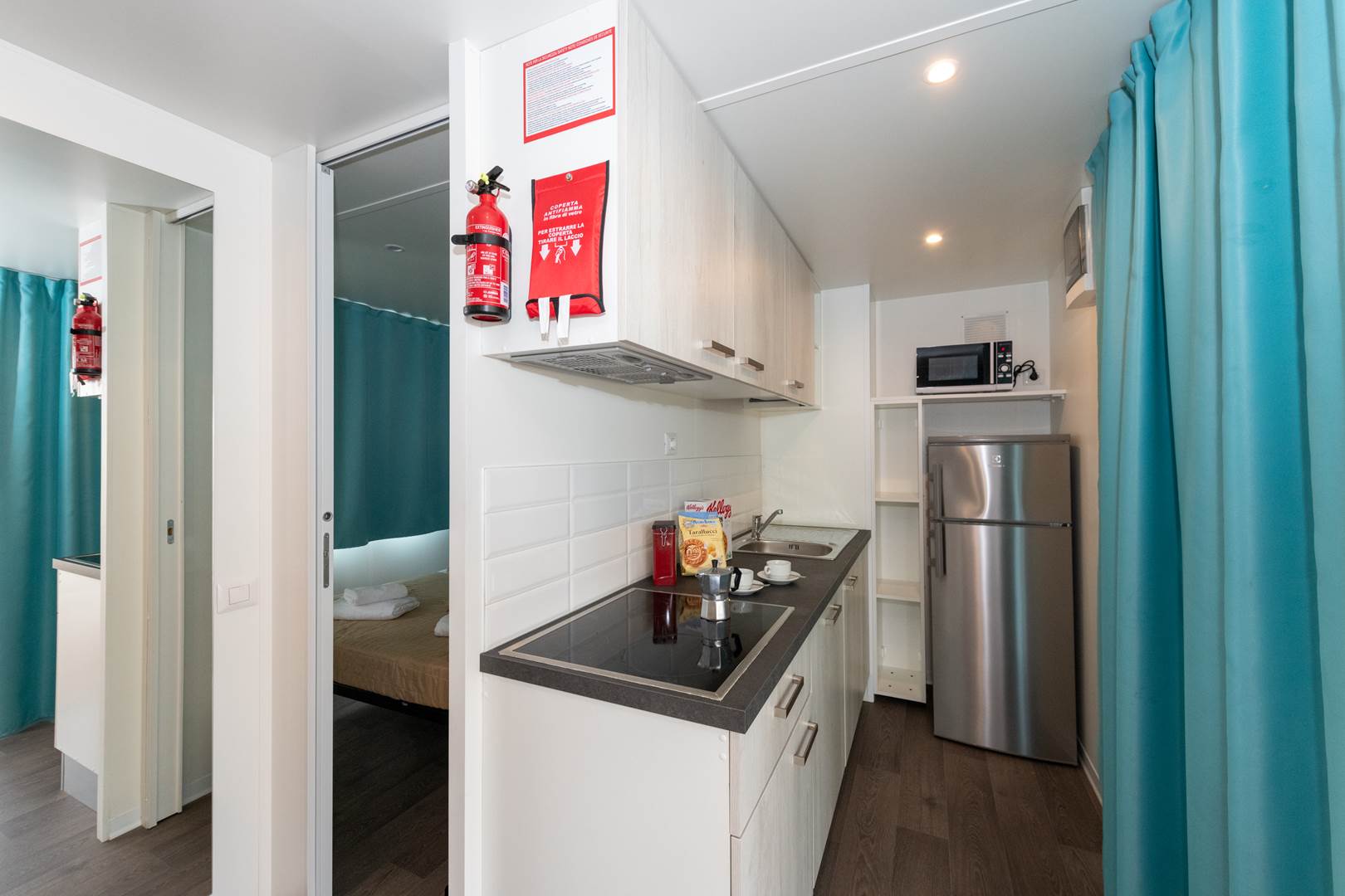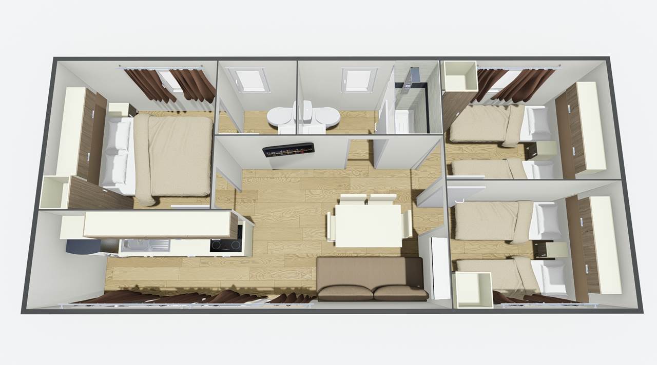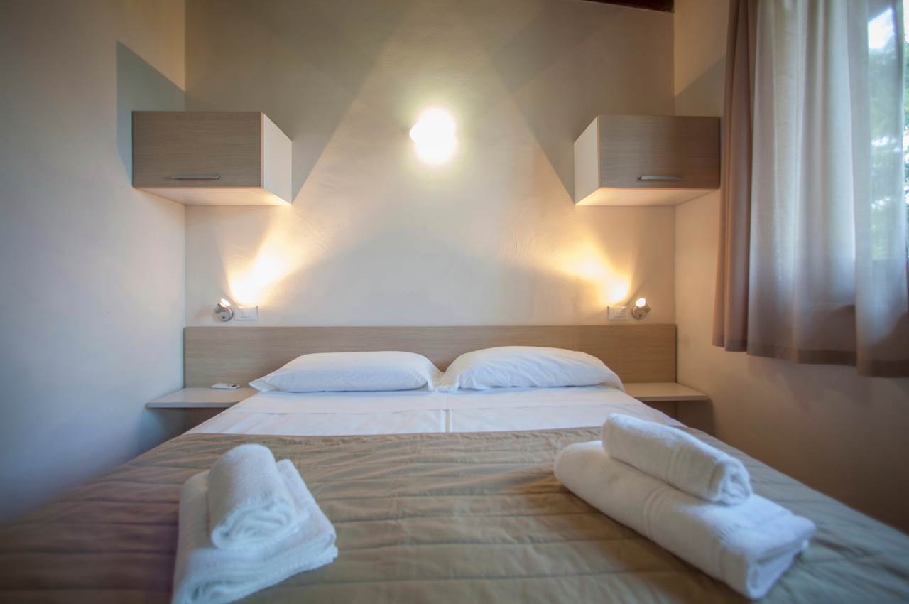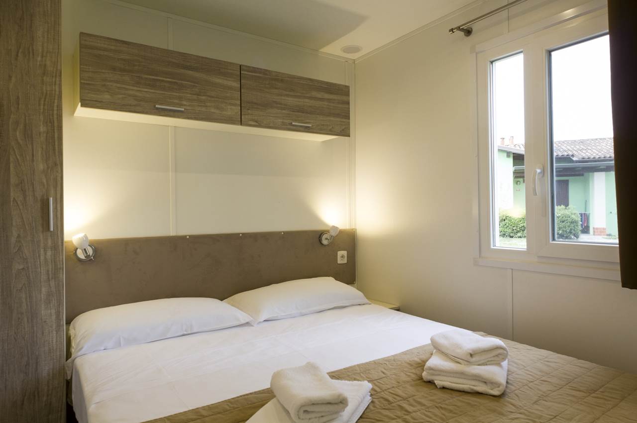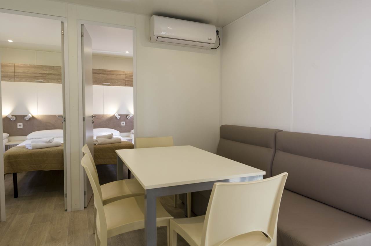 Z2 Maxi Prestige: 33mq ca. Camera da letto con letto matrimoniale, 2 camere da letto con due letti singoli, angolo cottura e frigorifero, bagno con doccia, secondo bagno, aria condizionata (caldo/freddo), TV, stoviglie per 6 persone, microonde, parcheggio privato.