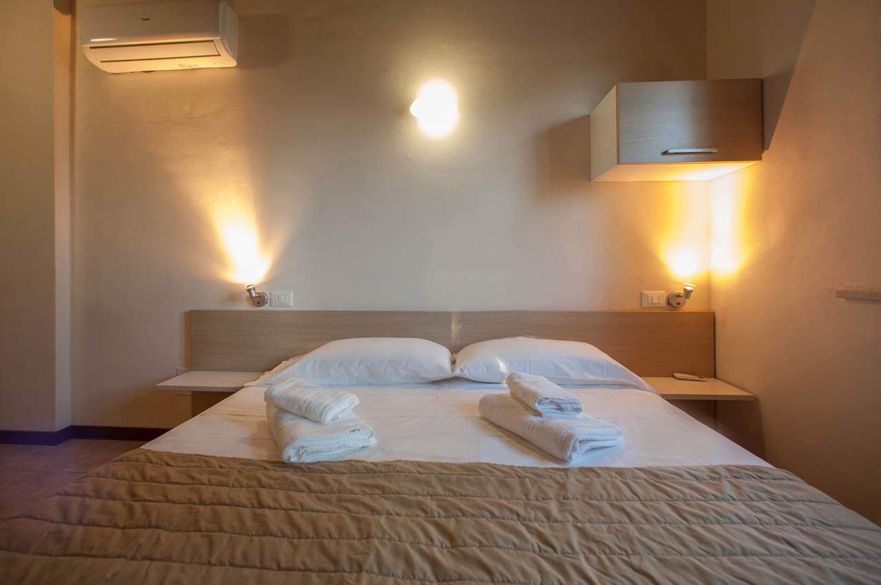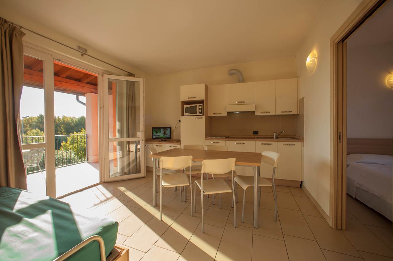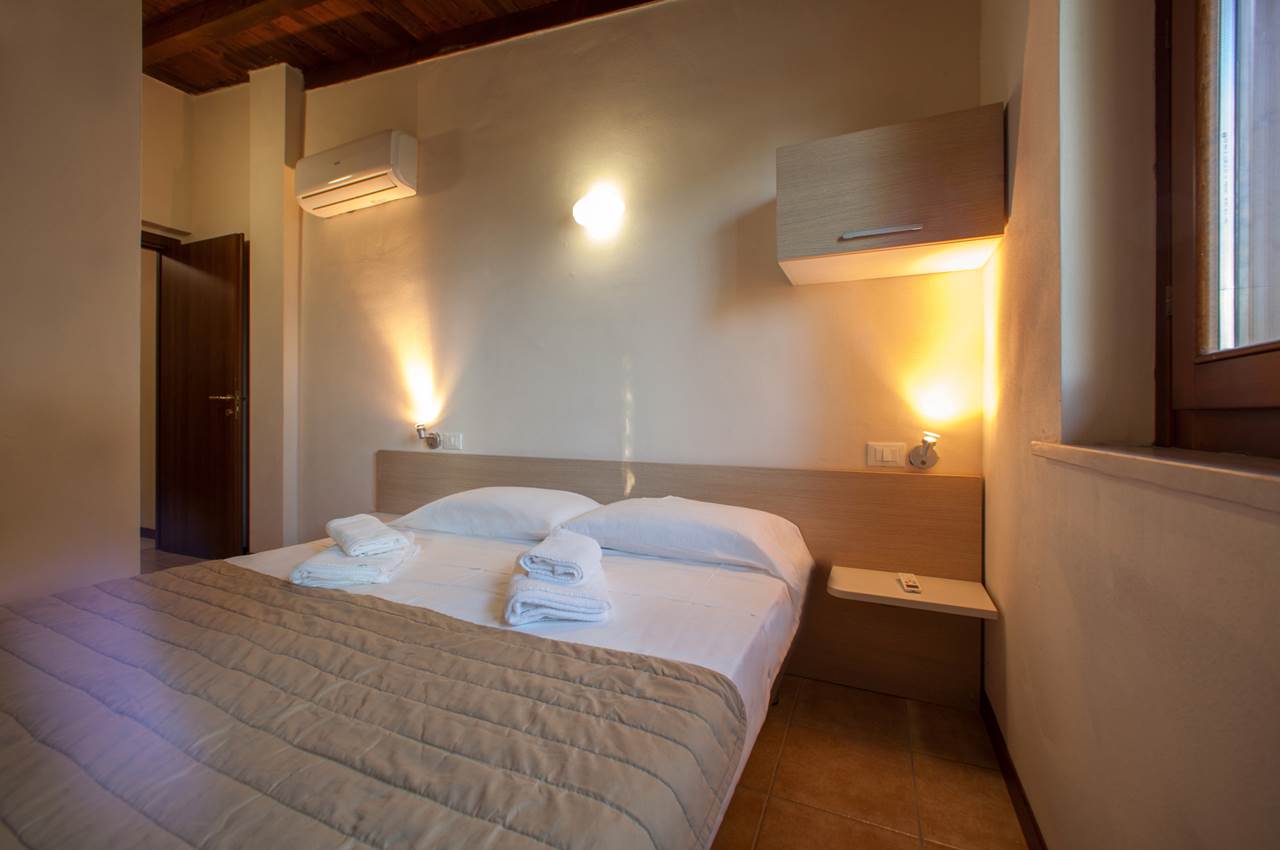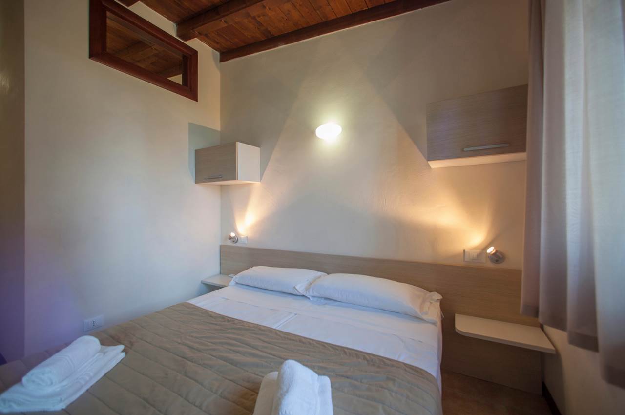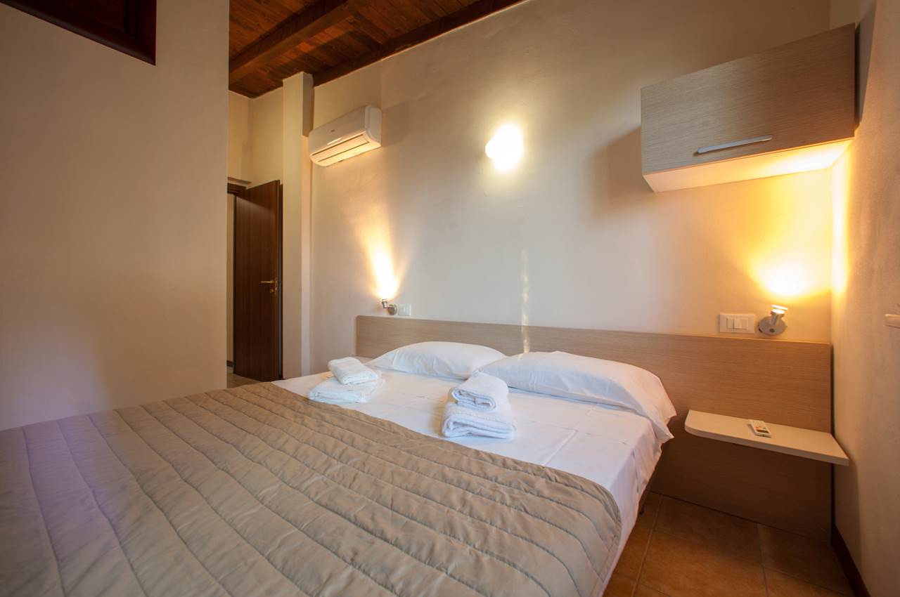TRICO: Trilo Comfort: 45/50mq ca. (max 4+2) . Camera da letto con letto matrimoniale, camera da letto con 2 letti singoli o 1 letto a castello, soggiorno con letto a castello, angolo cottura e frigorifero, bagno con doccia, terrazzo coperto (10-15 m²) sul giardino con tavolo e sedie, posto auto privato, aria condizionata (caldo/freddo), TV, stoviglie per 6 persone, microonde.