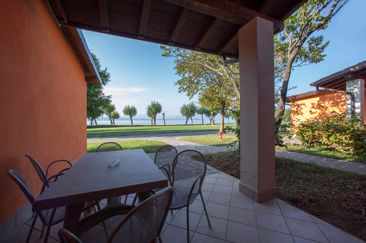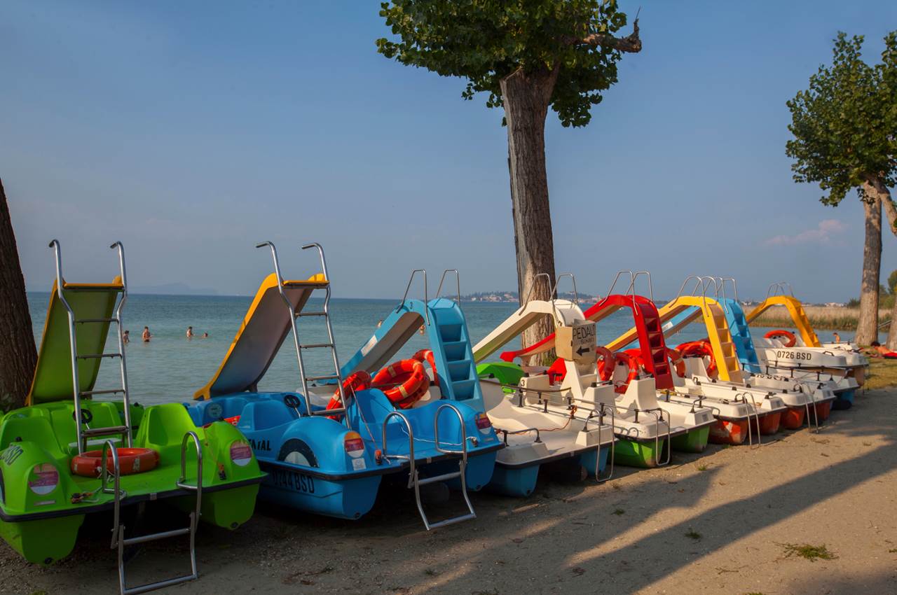 Il villaggio dispone anche di una spiaggia privata con accesso diretto al lago, ideale per nuotare, prendere il sole o praticare sport acquatici come windsurf e SUP.