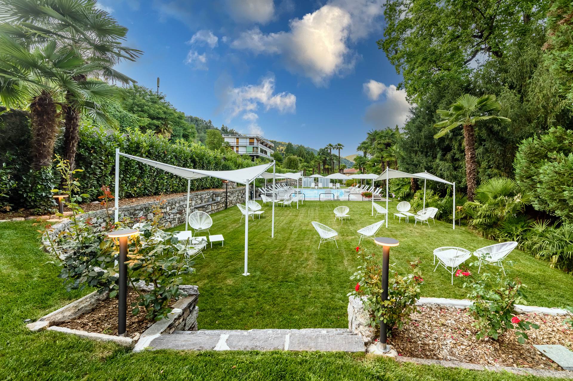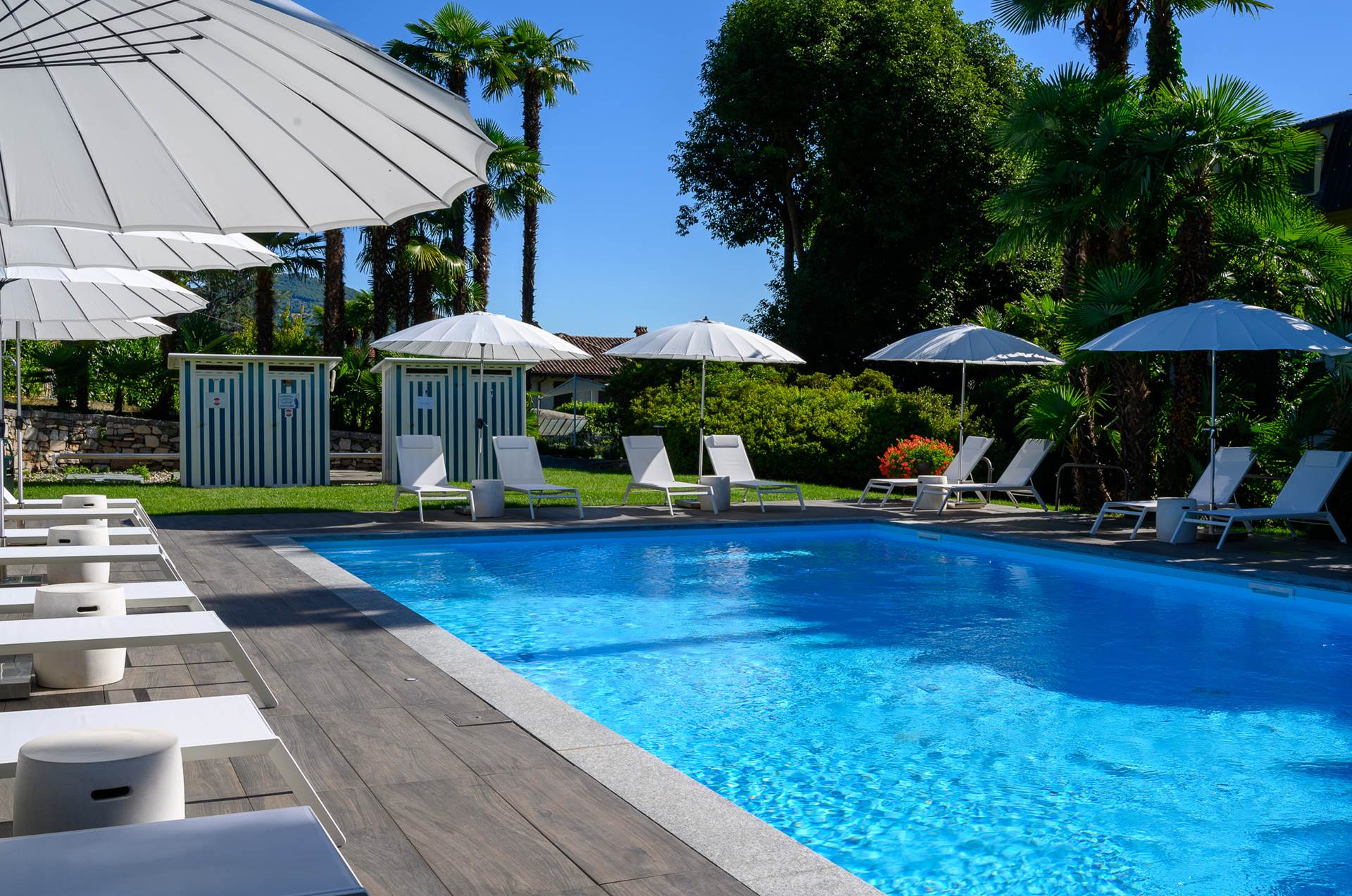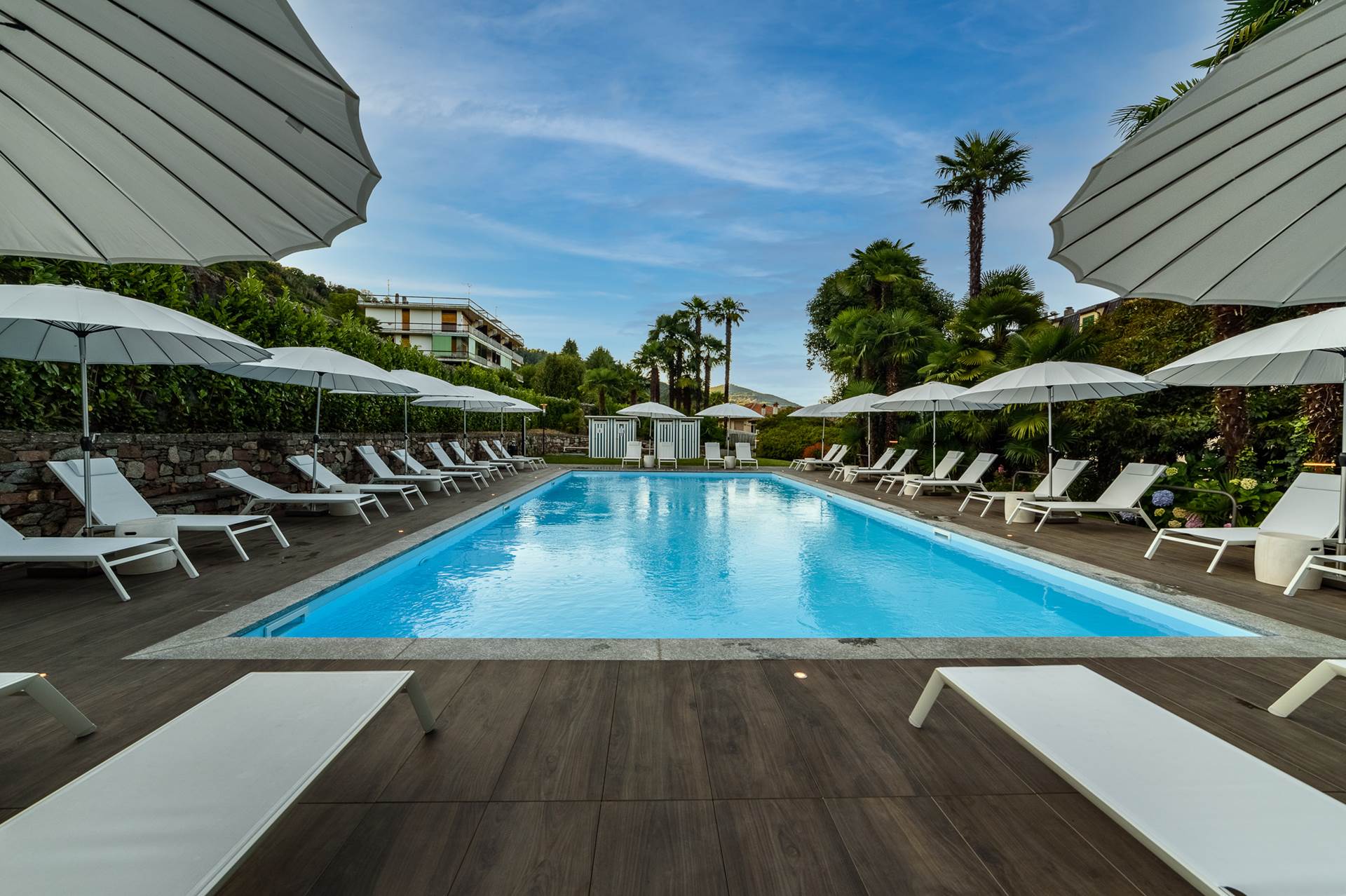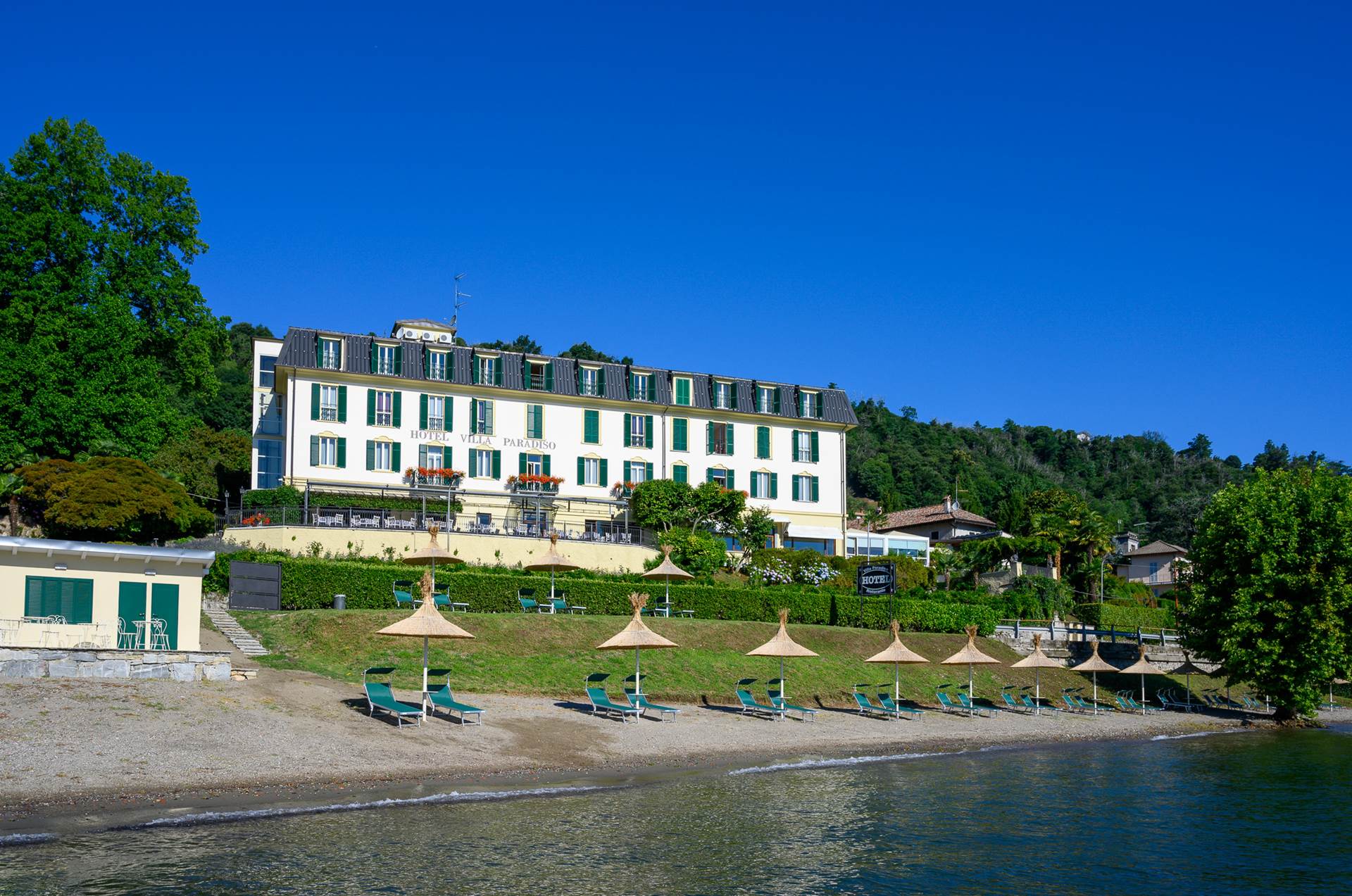L'Hotel Villa Paradiso è un'antica Villa del fine '800 imersa nel verde affacciata direttamente sul Lago Maggiore, divisa solo dalla strada che costeggia il lago. Recentemente è stato completamente rinnovato, mantenendo il decoro e l'eleganza dello stile originario, ma inserendo nelle camere uno stile più moderno. Possiede una spiaggia privata con sabbia, un plus raro nella destinazione.